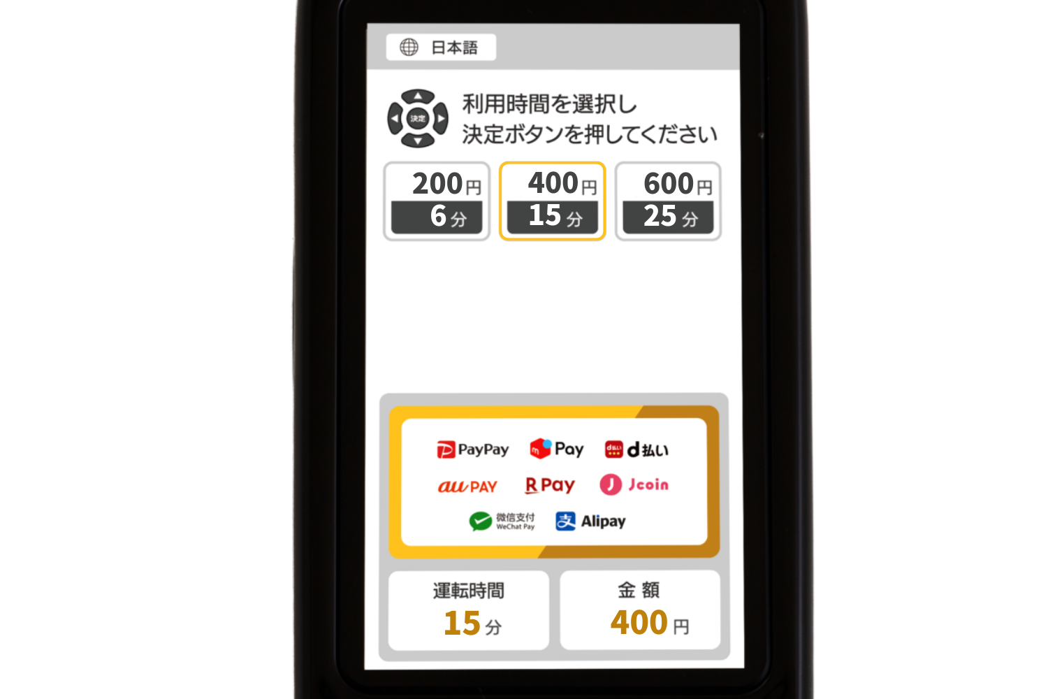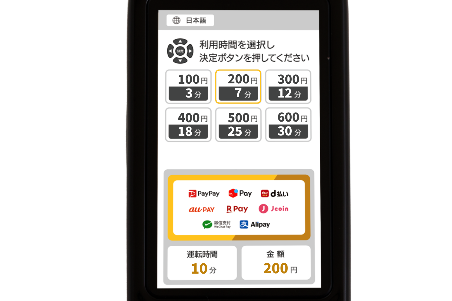 課金式 未対応 業務用を想定していないため、 課金式に対応していない |